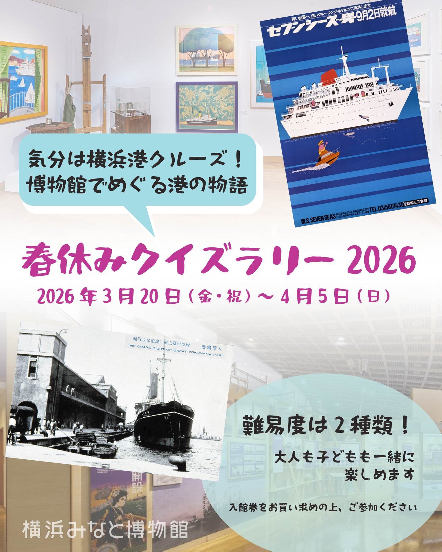 横浜みなと博物館では、春休みの時期に合わせて3月20日(金)~4月5日(日)の期間、大人も子どもも楽しめる「春休みクイズラリー」を開催中です。