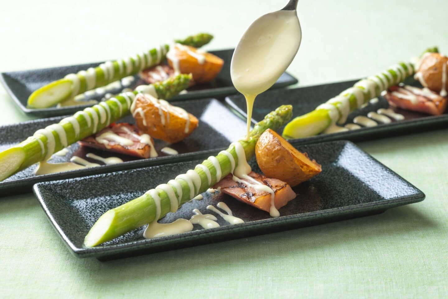 ・一本アスパラガスとベーコン・ポテトのチーズソース掛け