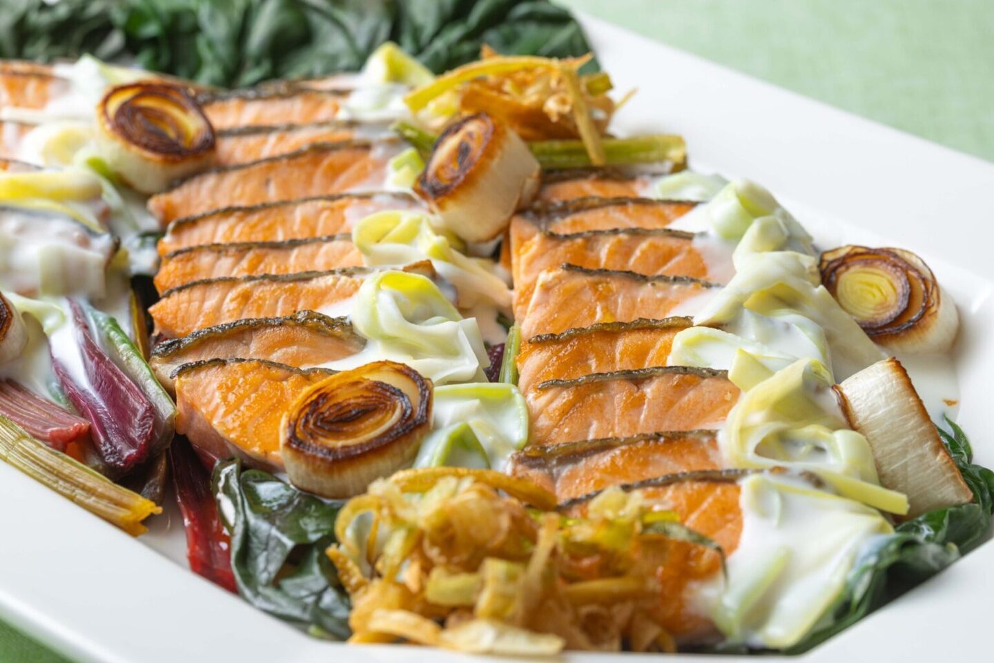 鮭のソテー 竹中ファームのポロねぎクリームソース