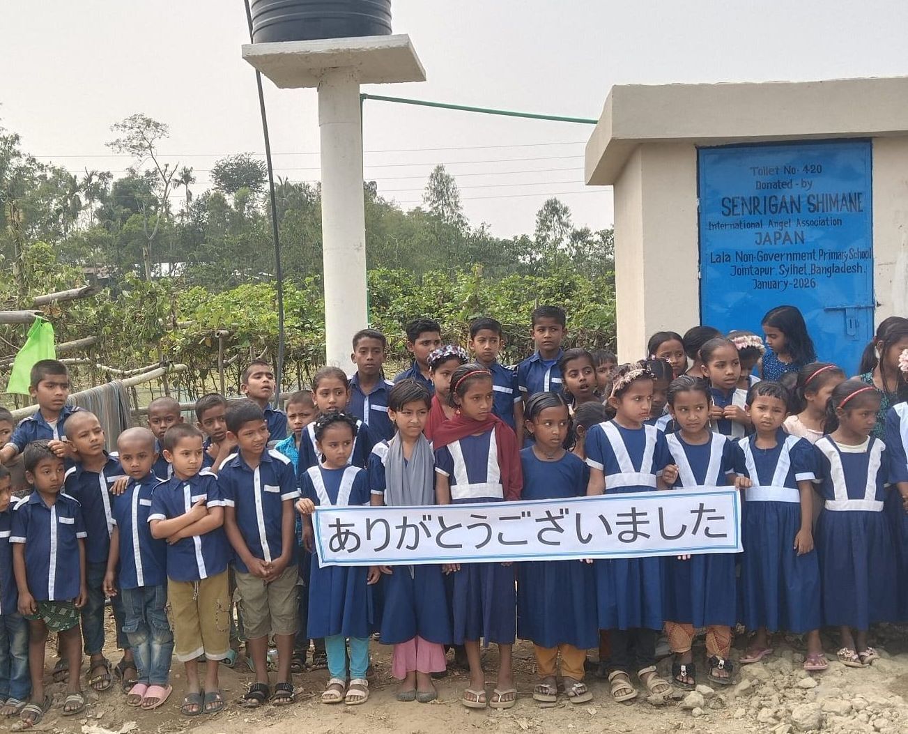 このたび、2026年3月10日、島根千里眼の支援により、シレット県ジョインタプール郡ララ村にあるララ村営小学校へトイレ一式を寄贈しました。同校には約150名の生徒が通っており、衛生環境の改善により子どもたちが安心して学校生活を送れる環境が整いました。