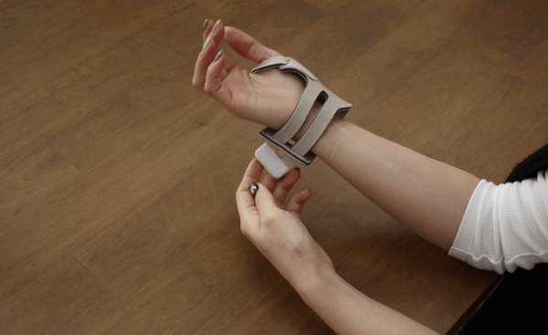 固定が必要な部分だけを正確に圧迫するストラップで、尺骨を圧迫しない構造を採用しているため、デスク作業からスポーツまで、一日中快適に着用できます。