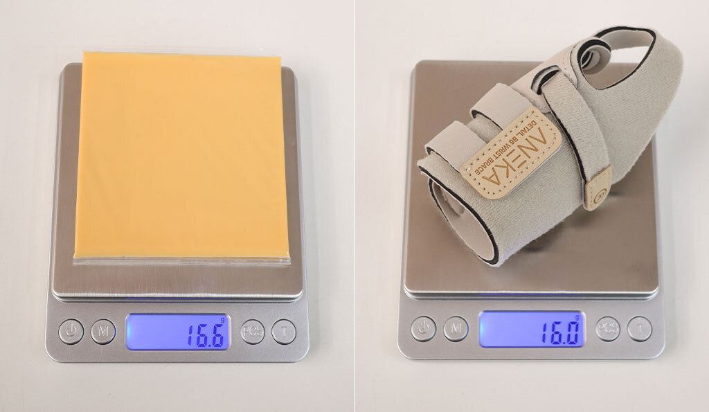 チーズ一枚よりも軽いこの手首サポーターに、なんと3枚の生地が重なっているなんて信じられますか?
