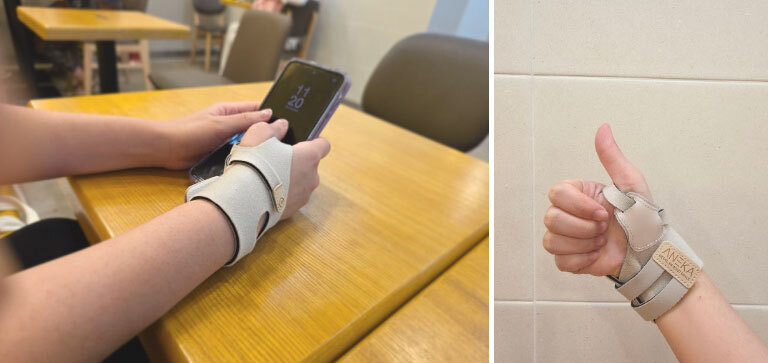 アネカB6親指サポーターは二重リングの引き方式で製作しているため、サンプル製作と着用テストを行い、不便な部分を数十回の設計修正で快適に着用できるように製作されており、長く使用できます。