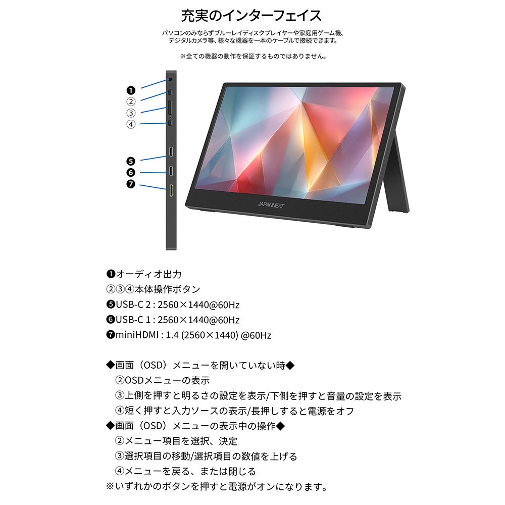 別紙:11.6インチ VAパネル搭載 WQHDモバイルモニター商品概要