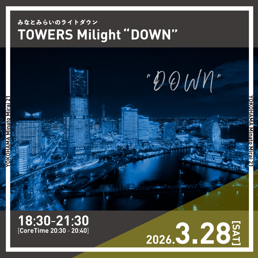 みなとみらいでは、2026年3月28日(土)、みなとみらいのオフィスをはじめとする約40のビル群を一斉にライトダウンする恒例のイベント「TOWERS Milight “DOWN”」を開催します。