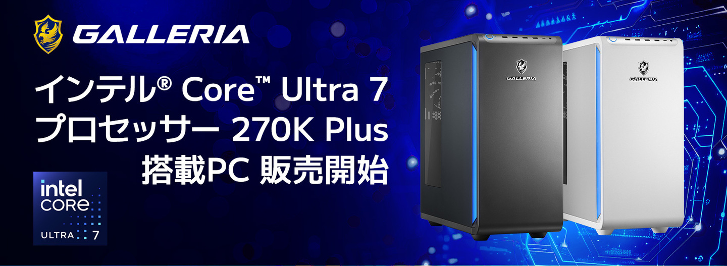 【GALLERIA】最新デスクトップ用CPUインテル Core Ultra 7 プロセッサー 270K Plus 搭載PC 8機種 3月26日(木)販売開始
