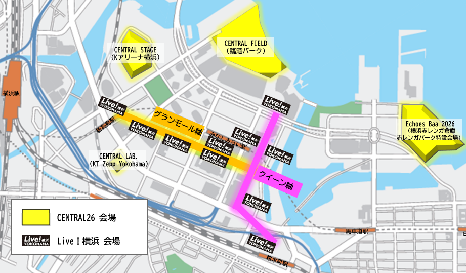 新たな都市型音楽フェス「CENTRAL(正式名称:CENTRAL MUSIC & ENTERTAINMENT FESTIVAL 2026)」と、街なかで音楽に出会える「Live!横浜」を同時開催。