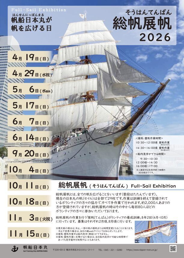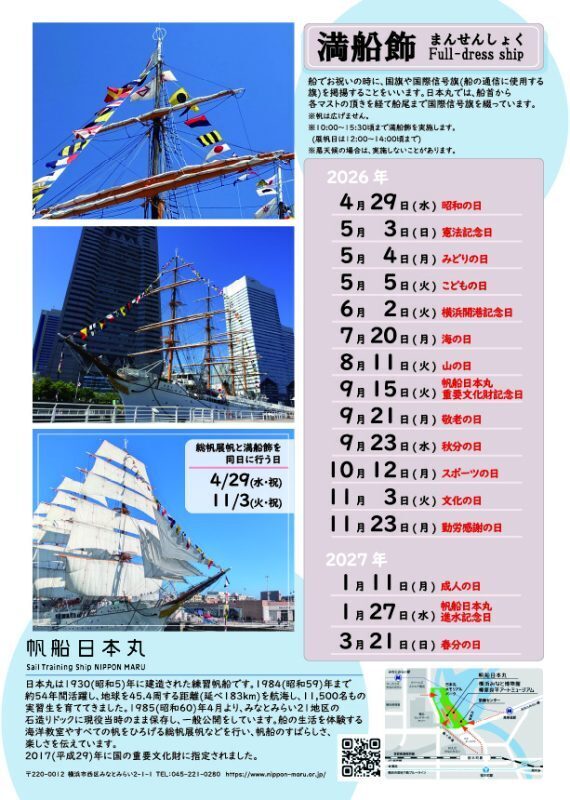 帆船日本丸 2026年度 『総帆展帆』『満船飾』スケジュール