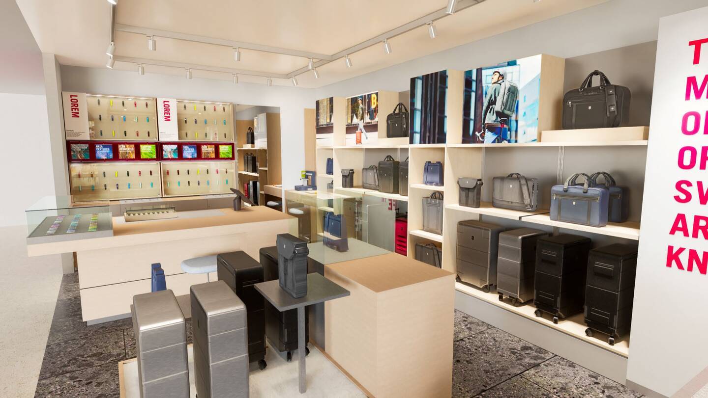 トラベル&ビジネスギアエリアには、自由にお使いいただけるフェルトで覆われた大型のテーブルを設置しています。人気のビジネスバッグから大容量スーツケースまで、商品を広げて細部までじっくりご覧いただけます。
