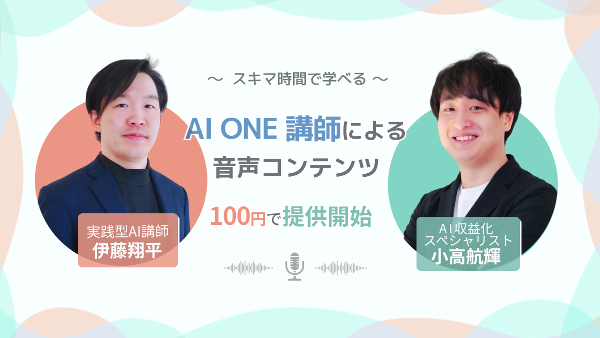 AI ONE講師が音声コンテンツを100円で販売開始!実践的なAI活用スキルを学べる新たな学習機会を提供