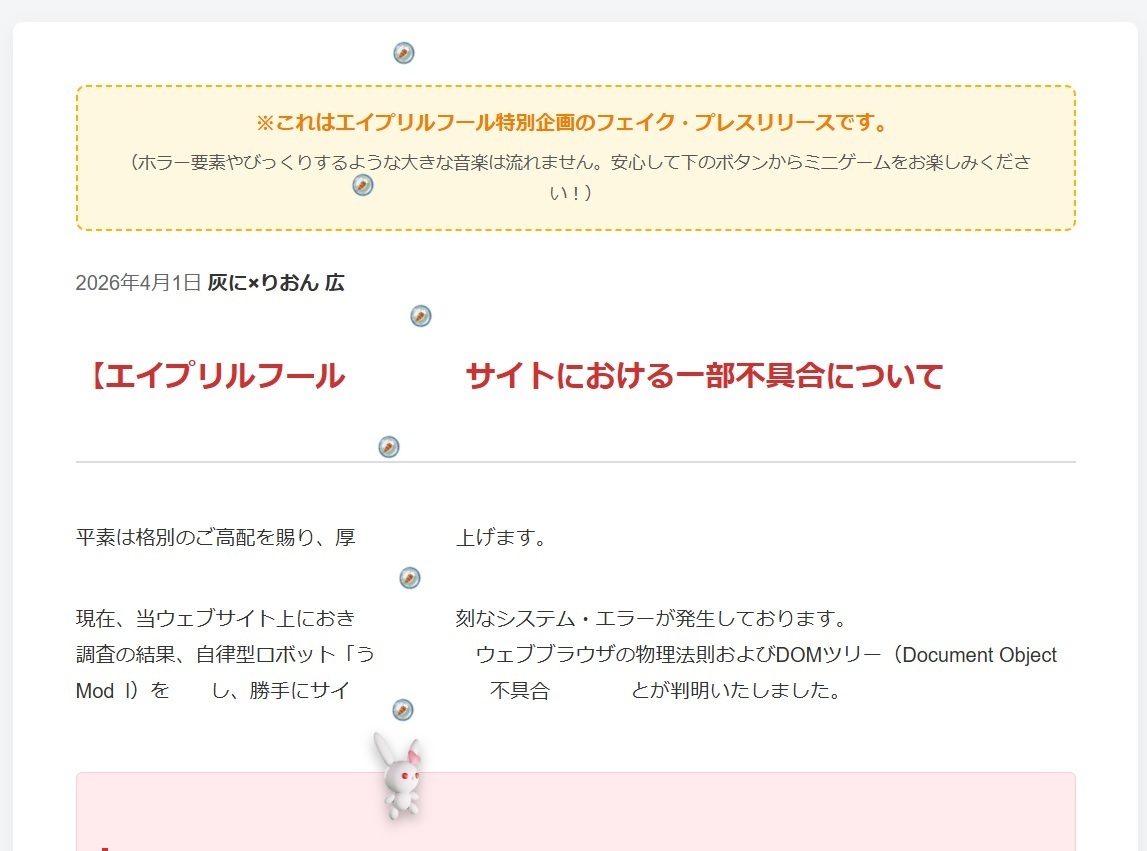 【エイプリルフール企画】お堅い文章を撃ちまくる!?「灰に×りおん」から謎の『うさロボ・クラッシャー』公開!