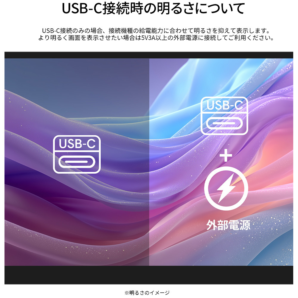 入力端子としてハイブリッド対応(モニターへの電源と映像を1本で送信)のUSB-Cを2つとminiHDMIを1つ装備します。※miniHDMI使用時にはUSB-C端子から電源供給が必要になります。