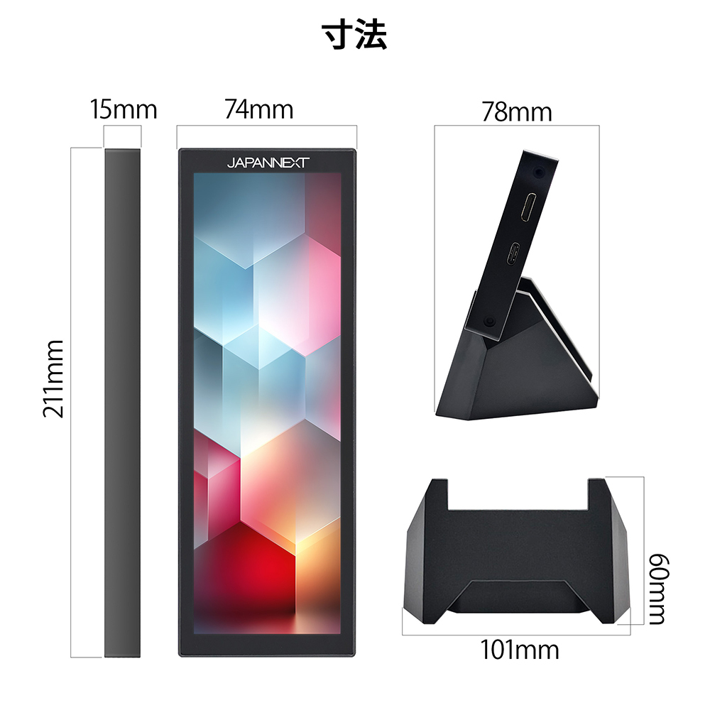 JAPANNEXTが7.8インチ IPSタッチパネル搭載 解像度400×1280に対応した縦長の小型モバイルモニターを16,980円で4月9日(木)に発売