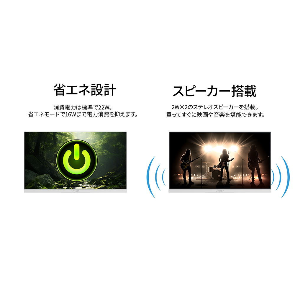 100×100mmのVESAマウントに対応しますので、別売りのモニターアームなどに使用が可能です。2W×2のスピーカーを内蔵しています。