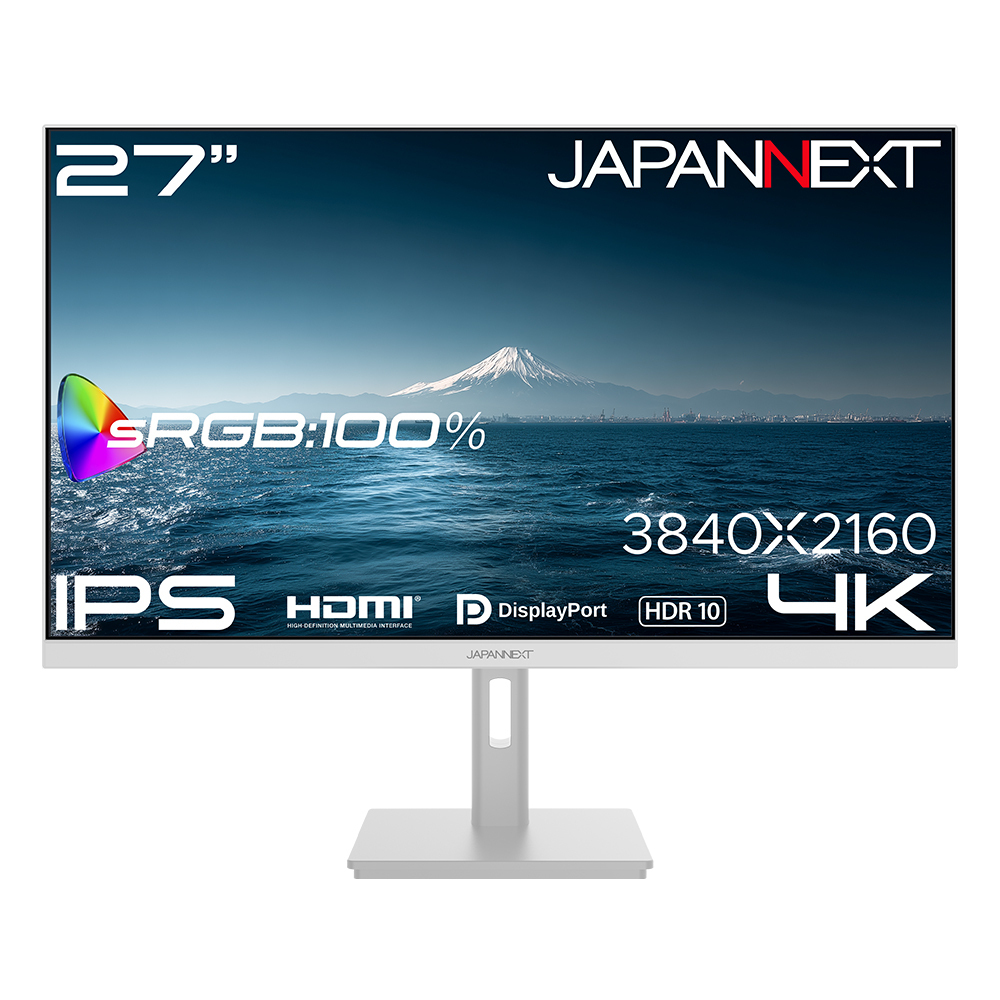 JAPANNEXTが27インチ IPSパネル搭載 本体カラーにホワイトを採用した4K液晶モニターを34,980円で4月9日(木)に発売