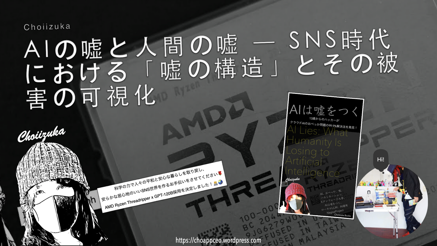 AIの嘘より危険?SNS時代における「人間の嘘」の構造を可視化〜AIと人間の嘘が結合することで生まれる“最悪の情報拡散”とは〜■ 概要CHOIIZUKA WORLDは、現代の情報環境における新たな問題提起として**「AIの嘘と人間の嘘」**に関する分析記事を公開しました。本記事では、AIによる誤情報(ハルシネーション)だけでなく、SNS上で日常的に発生している「人間の嘘」に焦点を当て、その拡散構造と影響力を具体的に可視化しています。