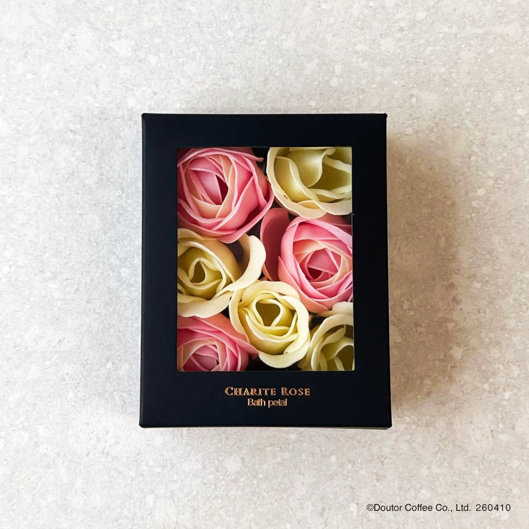 人気のコーヒー「マイルドブレンド」と、カフェインが気になる方にも安心な「カフェインレス」の2種類ドリップカフェから選べます。「ソープフラワー」は飾って楽しむだけでなく、お風呂に浮かべて香りとともにくつろぎの時間を演出。やわらかな肌触りと高い吸水性を備えた今治タオルの「DOUTORオリジナル刺繍入りハンドタオル」は、毎日心地よく使えます。