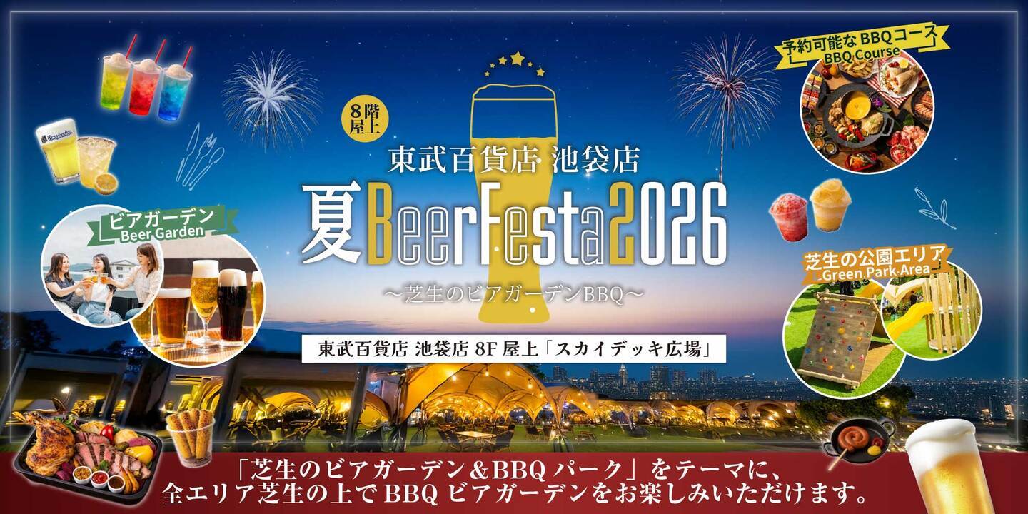 池袋駅直結で東武百貨店 池袋本店の8F屋上にて、「東武百貨店 池袋店 夏BeerFesta2026」が4/22(水)より期間限定OPEN!