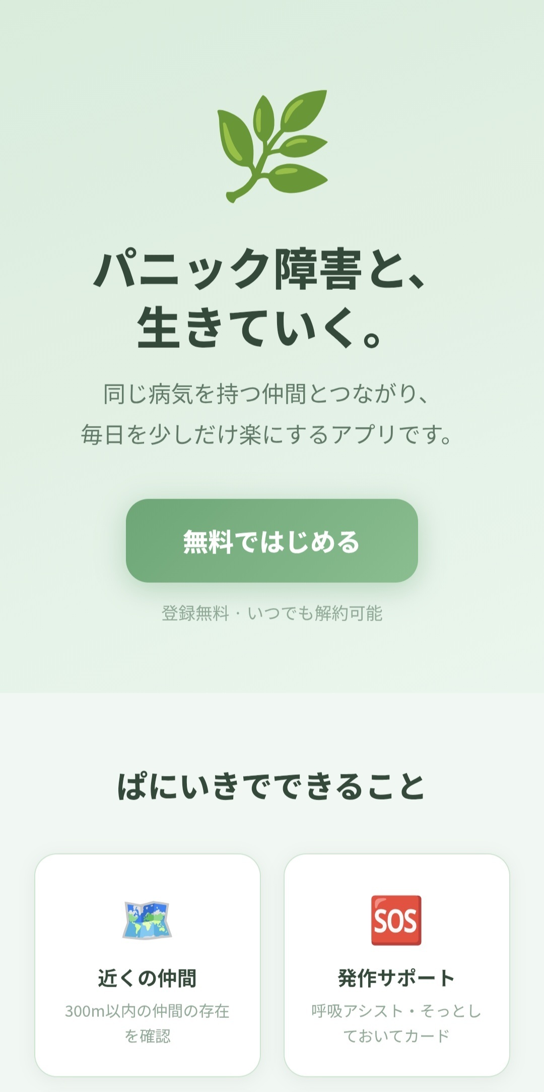 パニック障害に関する情報はインターネット上に多数存在しますが、その多くは「治し方」「克服する方法」に偏っています。今この瞬間も発作と戦いながら日常を送っている当事者が「今日を乗り越えるために必要なもの」を届けるアプリは、これまで存在しませんでした。開発者自身が10年以上のパニック障害当事者であり、「治す」ではなく「生きていく」をテーマに開発しました。