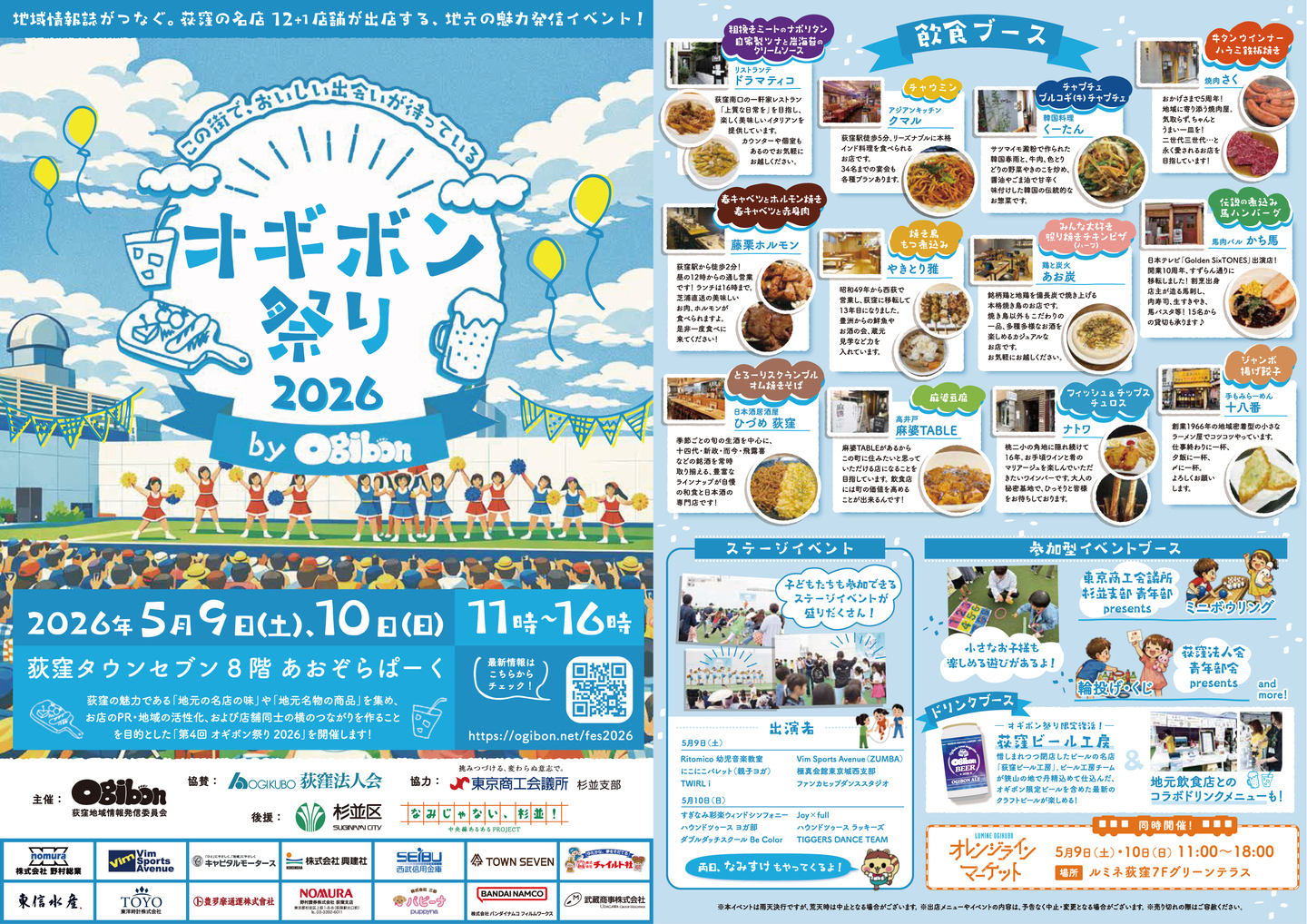 荻窪地域情報発信委員会(https://ogibon.net/)は、2026年5月9日・10日の2日間、荻窪タウンセブン8階あおぞらぱーく(https://www.town7.net/rooftop/)にて、地元の魅力発信イベント「第4回 オギボン祭り 2026」(入場無料)を開催いたします。昨年に引き続き、地域情報誌が街の人・店・魅力をつなぐ催しという位置づけを継承しつつ、今年は参加型ブースや地域連携企画をさらに充実させました。