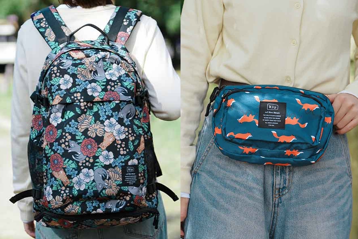 本企画は昨年4月にご好評をいただいた第2弾です。対象はKiU各種アイテムに加え、「KiU」と「Bleu Bleuet」がコラボした人気シリーズ『KiU and BleuBleuet』。ノベルティはミニボディバッグ型チャームで、昨年より一回り大きいサイズにアップデート。柄は”フォックスBL”と”フラワーキャットBK”の2種類で、いずれか1点をお渡しします。配布条件は、店舗は合計3,300円(税込)以上、オンラインストアは2,750円(税込)以上の対象商品をご購入となります。ノベルティはなくなり次第、配布を終了いたします。