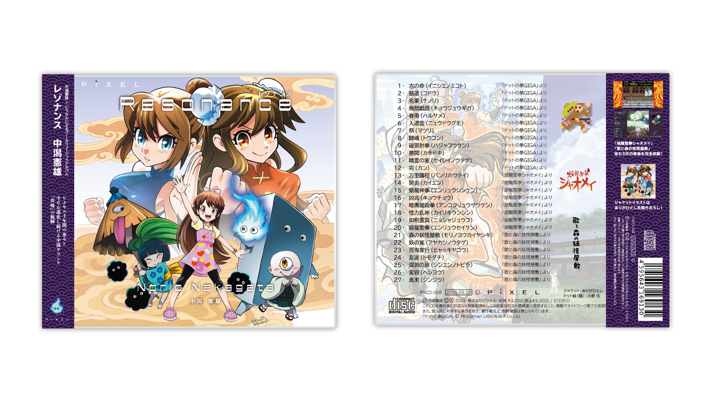本アルバムには、作曲を担当いただいた3作品「ドットの拳GIGA」「焔龍聖拳シャオメイ」「歌と森の妖怪屋敷」の全サウンドを収録しています。