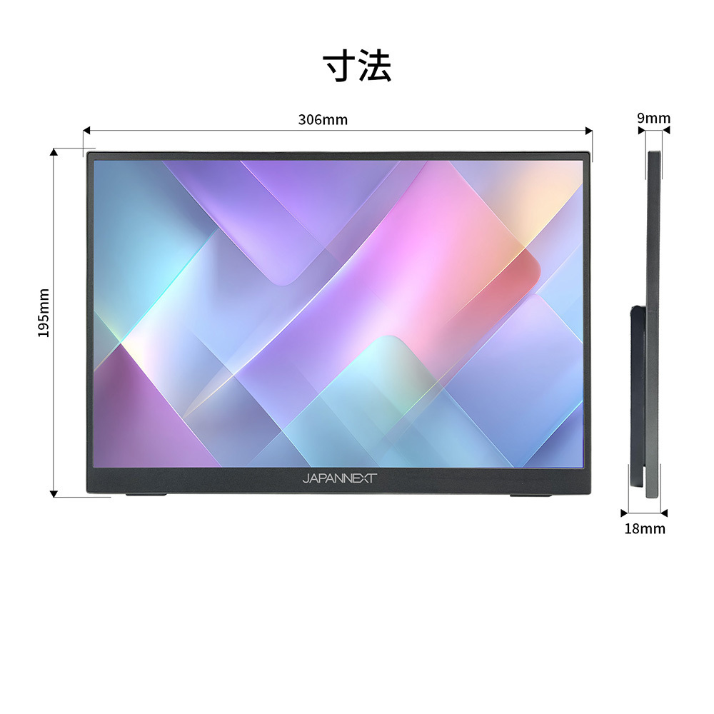 | 外形サイズ | 高さ195mm×幅306mm×奥行18mm スタンド幅:270mm |