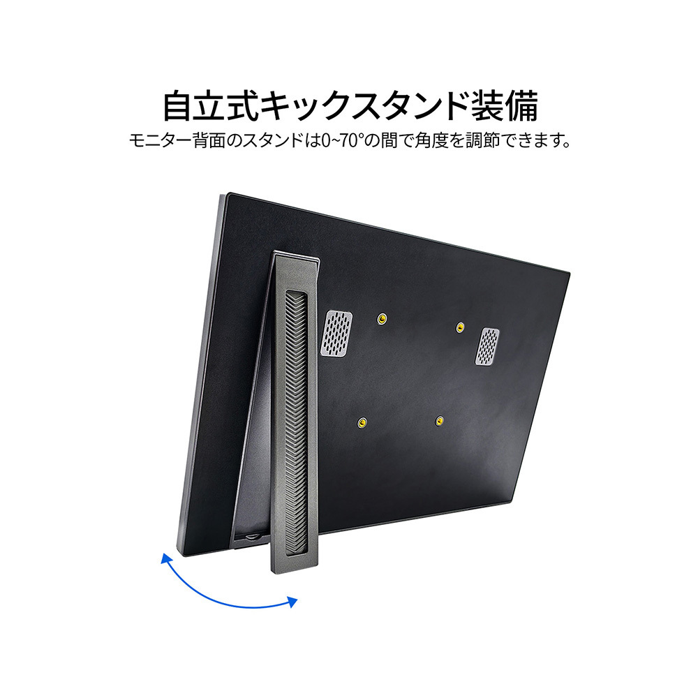 本製品は、15.6インチのIPSタッチパネルを搭載し、使いやすいフルHD(1920×1080)解像度に対応したモバイルモニターです。あらゆる角度から見ても色やコントラストの変化がおきにくいIPSパネルを搭載し、広視野角上下左右178°を実現します。