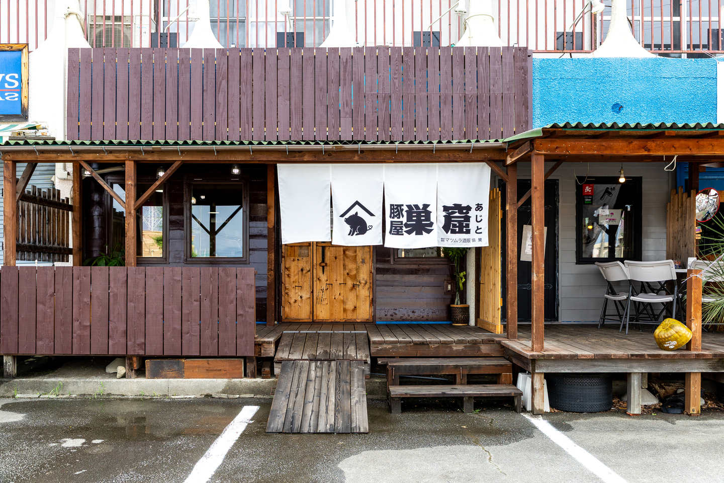 豚屋巣窟は、かつて「アメリカンBBQダイニングAjito」として営業していましたが、店舗転換の過程で、一時期バイクのカスタム専門店を手がけていた時期がありました。その際には、ガレージカルチャーに着想を得た「TOKUGYO BASE」という名称で展開していた経緯があります。