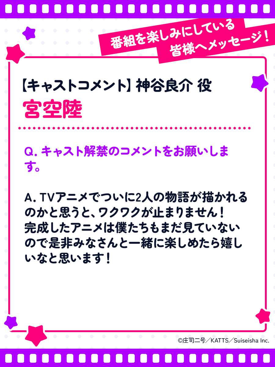 TVアニメでついに2人の物語が描かれるのかと思うと、ワクワクが止まりません!