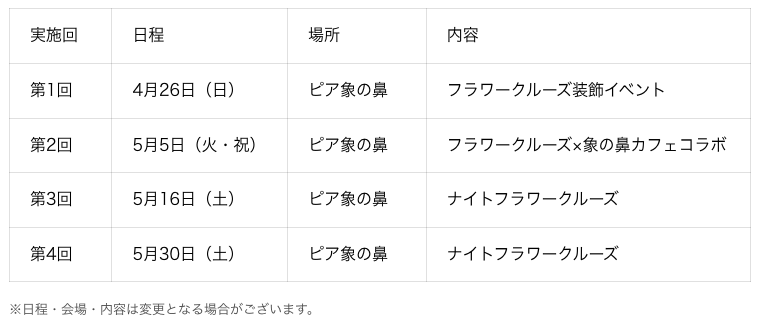 ゴールデンウィーク限定企画「フラワークルーズ」初出航