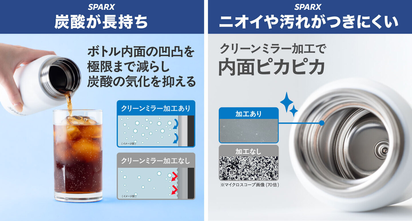 ■ クリーンミラー加工で炭酸が長持ち・ニオイや汚れもつきにくい