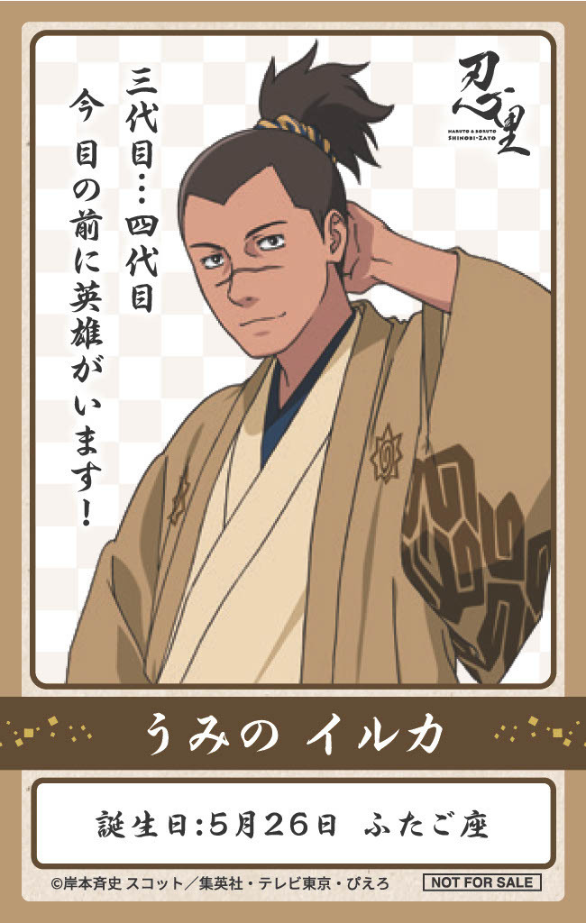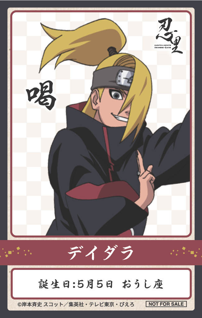 本イベントでは毎月、忍里限定の描き下ろしイラストを使用した、オリジナルバースデーステッカーをプレゼント。5月は「秋道チョウジ」「デイダラ」「カワキ」「うみのイルカ」をお祝いします!