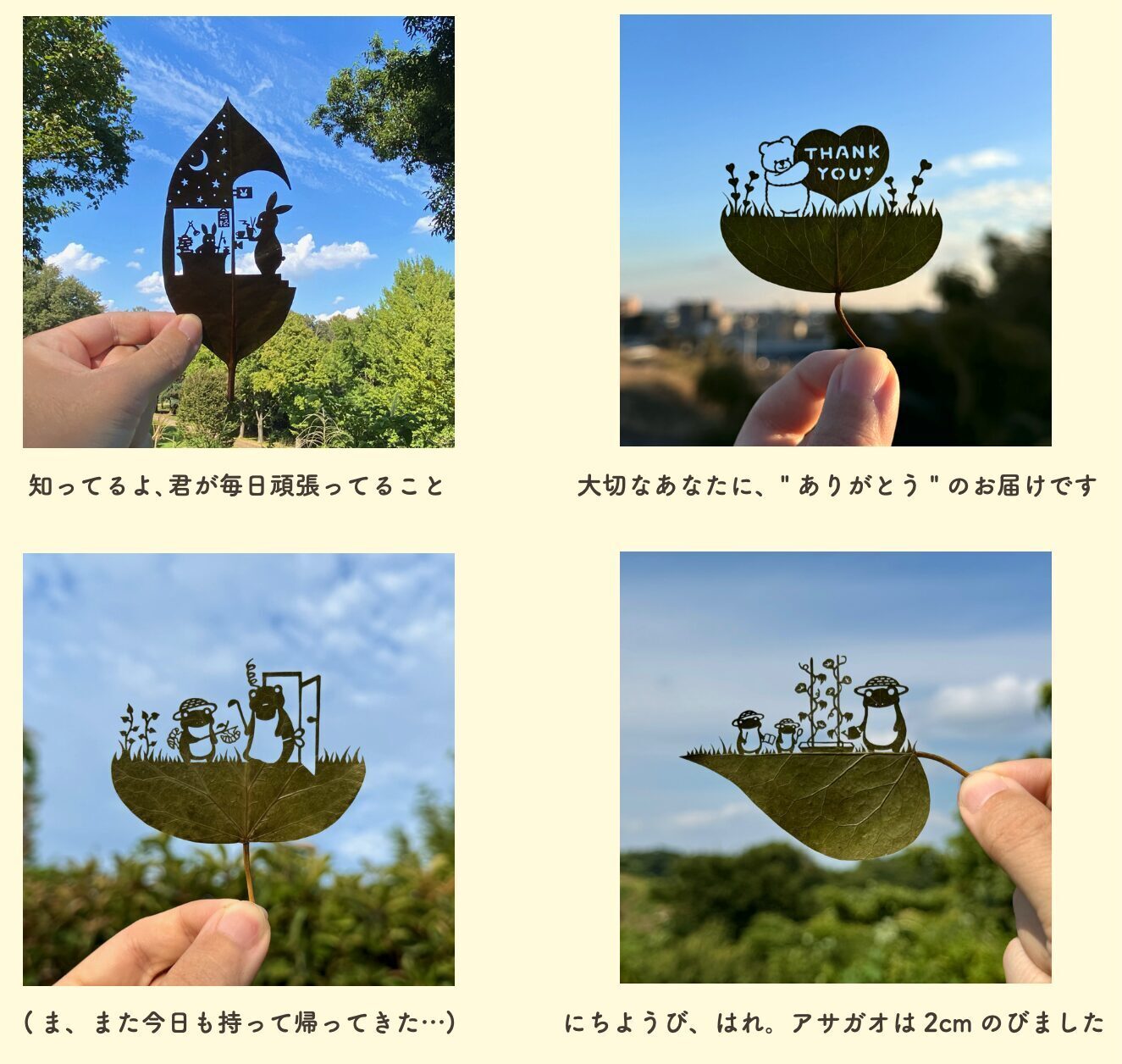 一枚の葉から生まれる繊細な作品は、物語性とやさしい世界観が魅力。