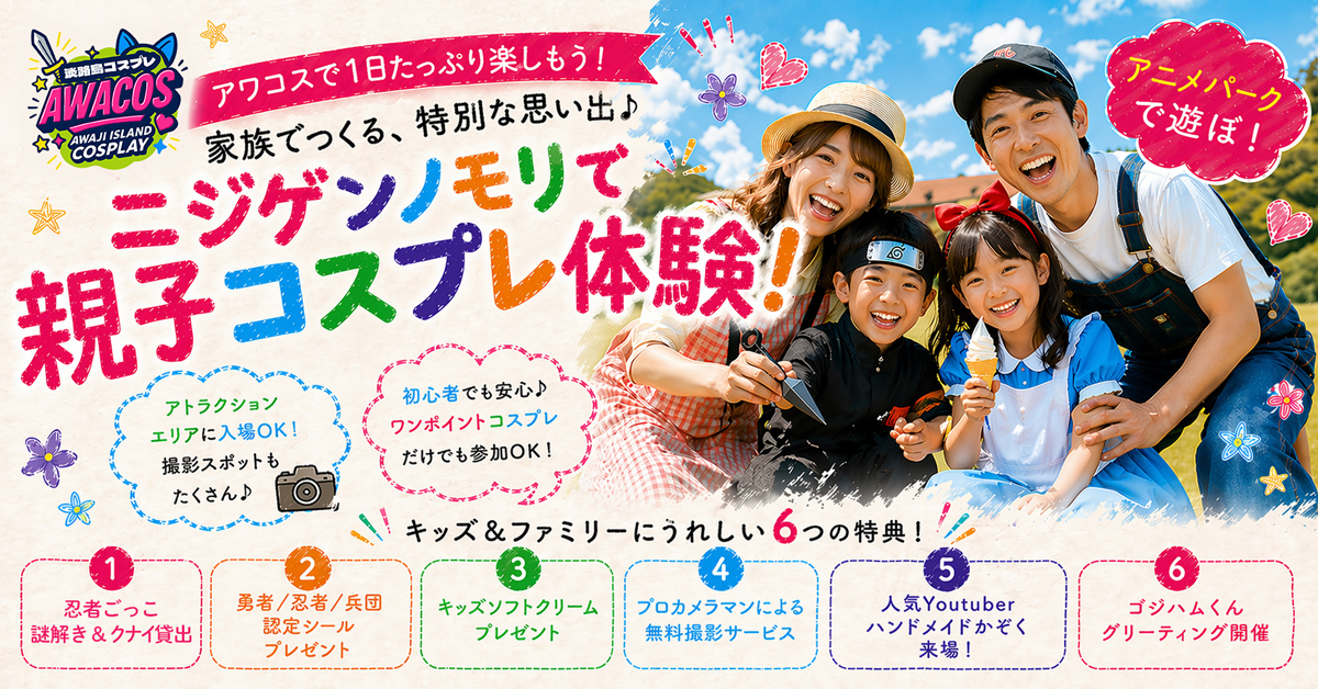 ニジゲンノモリ×世界コスプレサミット『第3回 淡路島COSPLAY〜アワコス〜』ファミリー向け「キッズプログラム」を大幅拡充!
