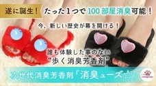 遂に!100部屋消臭可能な消臭芳香剤を299☆companyが開発!昨年には特許出願も済ませ、現在特許出願中になっています。通常1部屋分しか消臭芳香しないのが世界共通の常識ですが、なんと薬剤が続く限り100部屋であっても消臭芳香が可能という歴史を変える新製品が開発されました。この製品の製品化をするための資金を募るのに、クラウドファンディングの『キャンプファイヤー』で8月2日から夢の消臭芳香剤製品化実現プロジェクトのチャレンジが開始されます!その製品の名は、次世代消臭芳香剤『消臭ューズ☆』別名『歩く消臭芳香剤』です。100部屋消臭の他にも今までの消臭芳香剤にはない特別な機能が沢山備わっています。見た目もデザイン性高く、可愛くもオシャレなビジュアルに仕上がってます。性能良し!デザイン良し!今、新たな歴史が幕を開けます!