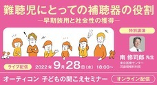 110余年の歴史を持ち、デンマークに本社を置く補聴器メーカー、オーティコン補聴器(本社:神奈川県川崎市、プレジデント:木下 聡、以下 オーティコン)は、9月28日(水)18時より子どもの聞こえセミナーをオンラインで開催します。「難聴児にとっての補聴器の役割―早期装用と社会性の獲得について―」をテーマに、専門医による特別講演や弊社最新の小児補聴器に関する情報をお届けします。本セミナーは聴覚に携わる専門家をはじめ、広く一般の方に視聴いただけるよう、費用は無料とし、事前申込でどなたでも参加が可能です。ライブ配信の申込受付は同日17時まで、オーティコン子どもの聞こえセミナー案内サイトにて受け付けます。また、ライブで参加が難しい方は、後日アーカイブ動画を視聴いただけます。