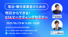 株式会社コネクター・ジャパン(東京本社:東京都港区、代表取締役社長:中濱康広、以下、当社)は、2025年6月25日(水)に、宿泊施設向け無料オンラインセミナー「宿泊・観光事業者のための 明日からできる!OTAマーケティングセミナー」を開催いたします。本セミナーでは、OTA(オンライン旅行代理店)運用に課題をお持ちの宿泊施設様へ向けて、これまで累計2,000施設以上を支援してきた実績をもとに、実践的なノウハウや成功事例をわかりやすくご紹介します。