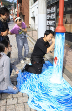 映像に合わせてカラダを動かそう!宝塚大学東京メディア芸術学部の学生が、新宿区内で開催されたスポーツ・レクリエーションの祭典「新宿スポレク」にて体験コーナーを出展