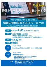株式会社ウイング(所在地:新潟市中央区蒲原町、代表取締役:樋山証一)では、7月25日(木)東京にて、MagicLogic導入による課題解決事例の紹介セミナーを開催する。当日は大成建設株式会社部長代理、特定非営利活動法人まなの樹理事長を講師にお招きし事例の紹介を行う。