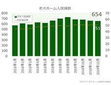 2018年12月末時点の老犬ホーム入居頭数は654頭となりました。