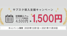 注目のサブスク機能が【通常の3分の1の価格(月額1,500円)】になる“サブスク導入支援キャンペーン”開始