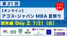 海外トップ大学・大学院留学準備指導校を運営する株式会社アゴス・ジャパン(取締役会長:横山 匡、本社:東京都渋谷区)は、ハーバード・コロンビア・MIT・NYU等、欧米トップスクール12校の日本人卒業生・在校生がオンラインにて集結する、「第21回 アゴス・ ジャパン MBA夏祭り 欧米編 Day2」を2024年7月21日(日)に開催いたします。