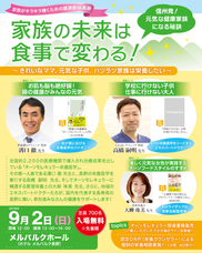 一般社団法人オーソモレキュラー栄養医学研究所(代表理事 溝口 徹)は、9月2日(日)に長野県長野市にて、家族がキラキラ輝くための講演会in長野「家族の未来は食事で変わる!」を開催いたします。