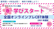 【薬学部1~4年生(無料)】薬ゼミオンライン教室「全国オンラインプレCBT体験キャンペーン」5/31まで クイズアプリ感覚で何度でも 春の学びスタート!