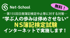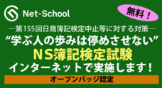 自宅で問題を解き、インターネットを通じて採点される「NS簿記検定試験」を6月14日(日)に実施。「第155回日商簿記検定試験」を受験する予定だった方に向け、モチベーションを保持できるよう、新型コロナウイルス感染防止にも配慮する形で実施。解説動画も配信し、合格点に達した受験生にはネットスクールWEB-SHOPで使えるお得なクーポンもプレゼントします。