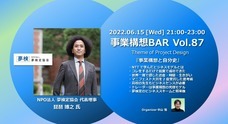NPO法人夢検定協会(本部:東大阪市森河内西2-36-15)の代表理事である琵琶博之が、6月15日にオンラインイベント「事業構想BAR」に登壇しますので、お知らせさせていただきます。  「事業構想BAR」は事業構想大学院大学の卒業生等が中心となって、毎週ゲストスピーカーを迎え、事業構想について意見交換する場です。2020年11月にスタートし、今回で87回目となり、現在の会員数は約440名となります。