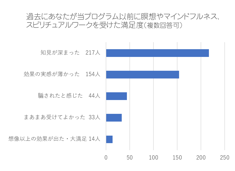 瞑想、精神世界修行経験者の多くが知見が深まったものの、体感と効果の実感の面では不満を感じていました