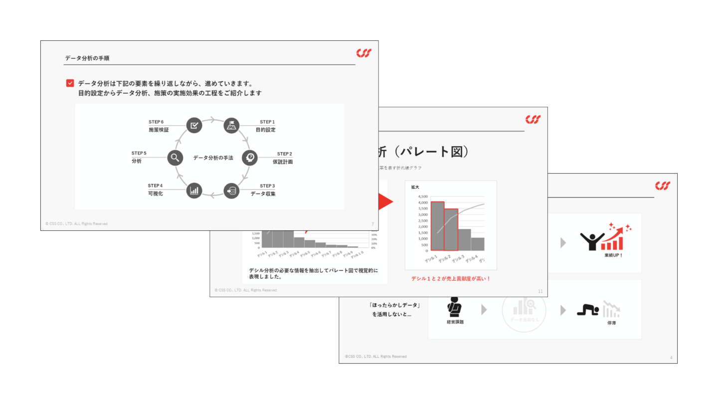 経験則や勘に頼った属人的な判断から、データを活用した「売上拡大」「コスト削減」を分析するためのベースを整えましょう。皆様の会社にも「データ」はあります。まずは社内のデータ活用から進めてはいかがでしょうか。