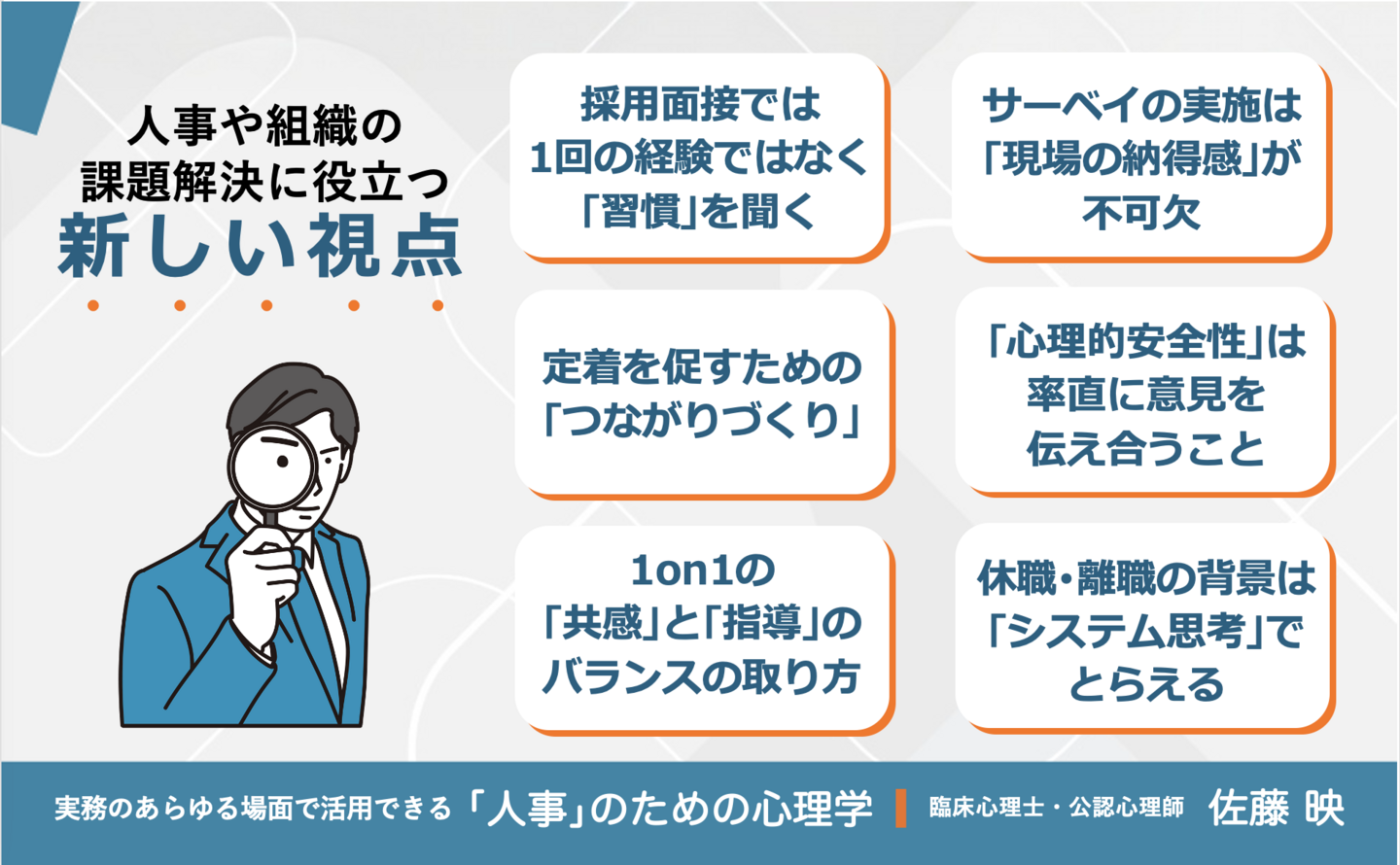 人事の悩みには、つねに人や組織の「心の動き」が関係しています。働く人が感じていること、組織で暗黙に共有されているルールに対して、どう考えてどう振る舞うべきか——心理学の知見をもとに具体的な対処法を提示します。